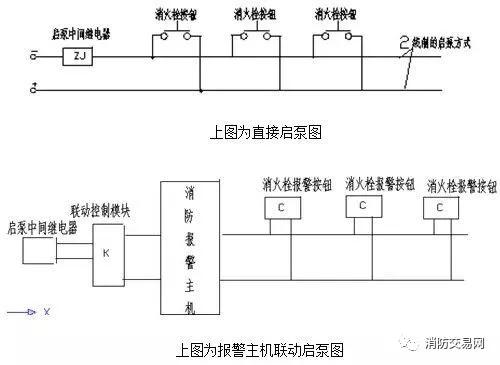 消火栓按鈕啟動消防泵組分為直接啟動消防泵和間接啟動消防泵,原先許多工程因規(guī)范要求不明確,部分采用消火栓按鈕間接啟動消防泵的控制方式;消火栓啟泵按鈕從接線方式分兩種,為消火栓按鈕并聯(lián)接線啟動消防泵和按鈕串聯(lián)接線啟東消防泵。